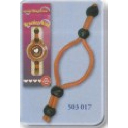 Brinquedo para cães em forma de osso de corda laranja e nós pretos em fundo azul