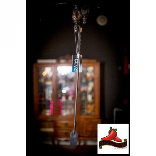 Colher para mexer bebidas com cabo metálico e extremidade preta