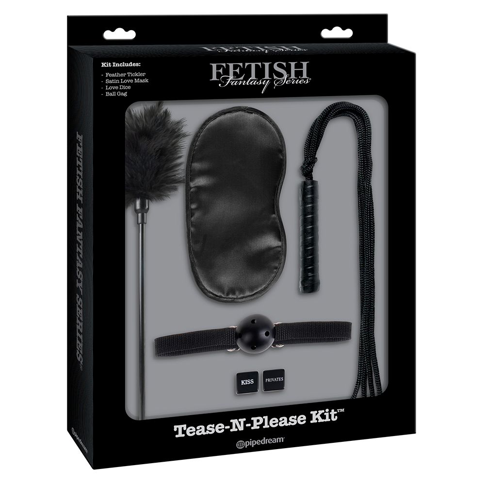Inicie-se ou disfrute das maravilhas do mundo BDSM da melhor forma possível. Este kit reúne tudo o que é necessário para ter uma experiência fantástica. A suave venda vai deixá-lo mais suscetível a carícias, a mordaça respirável irá camuflar os gemidos mais selvagens do seu submisso. Os chicotes e o espanador provocarão sensações intensas e os dados decidirão o seu próximo passo. Com FETISH FANTASY LIMITED EDITION usufrui de todo o prazer com muita classe.