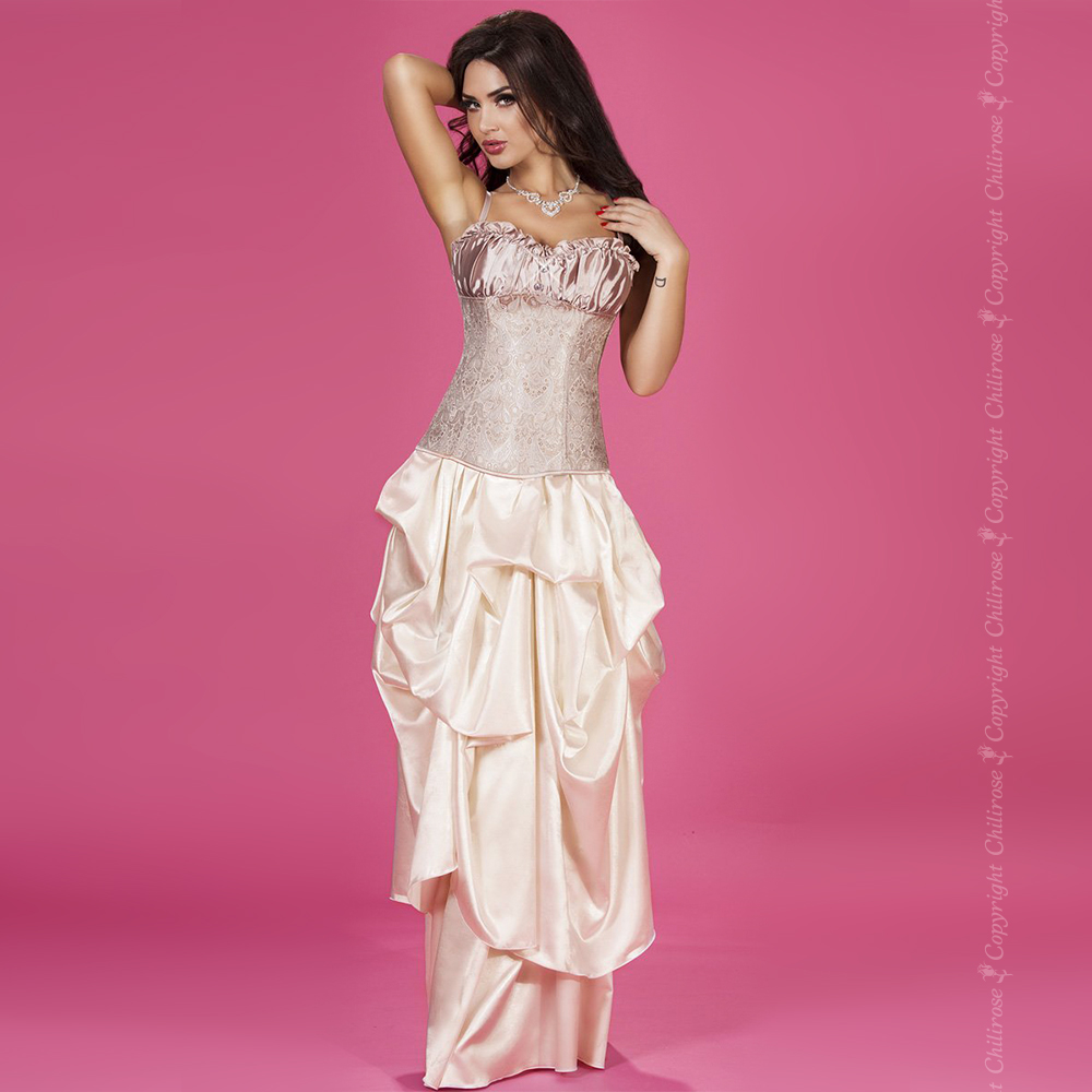 Um atraente e elegante corpete feito de materiais de qualidade. Com um bonito padrão floral, este corpete fecha atrás com laços cruzados e de lado com um fecho zíper. As alças são ajustáveis para um maior conforto. A zona do busto é de um material mais acetinado e com dois brilhantes no centro do peito, chamando a atenção e destacando a sua sensualidade. Um produto de alta qualidade da Chilirose, apresentado numa caixa elegante.