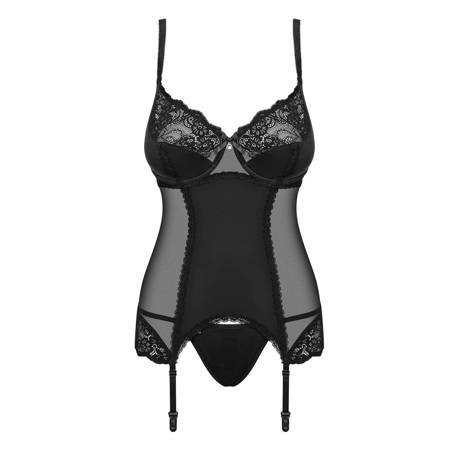 Meias sexy, os seus saltos altos favoritos, batom vermelho e... o corpete Amallie! Agora está pronta para causar uma ótima impressão! Vai sentir-se incrível no quarto a noite inteira. Renda sexy e tecido transparente são uma dupla perfeita para criar uma atmosfera quente!