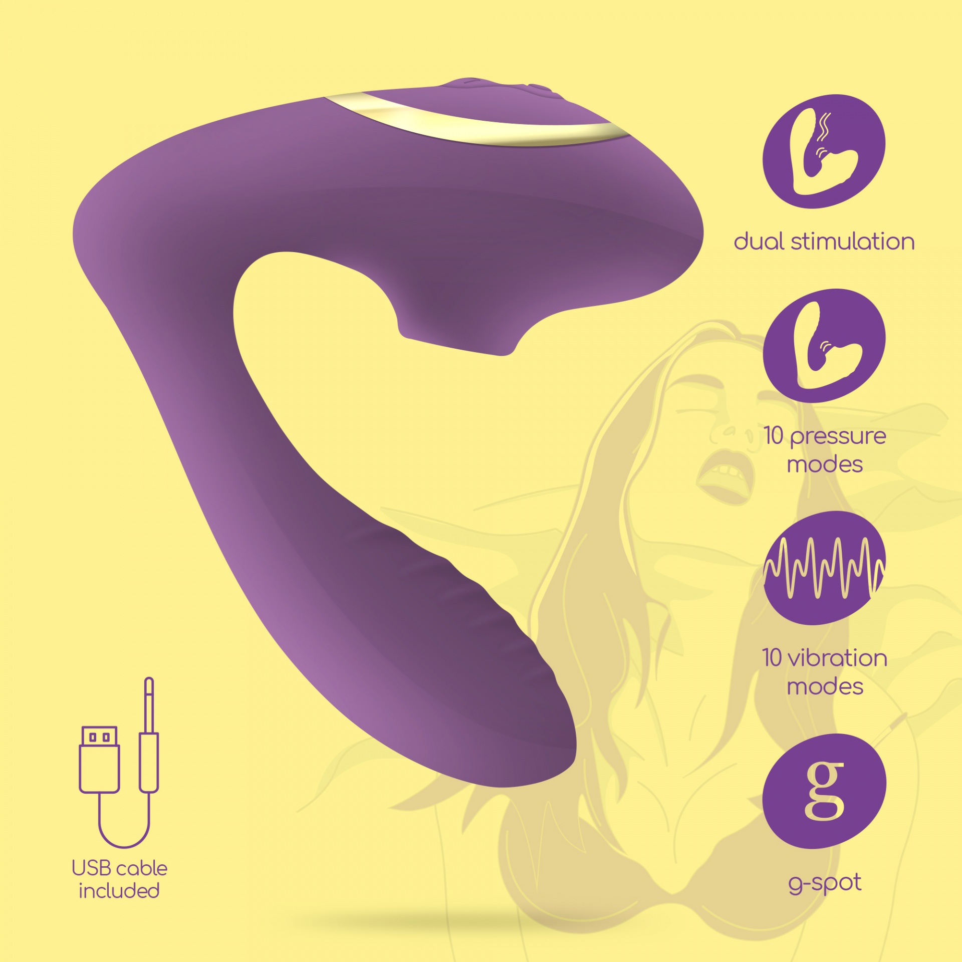 Este incrível estimulador massaja o seu Ponto G com 10 potentes e silenciosas vibrações enquanto a outra extremidade inunda o seu clitóris com 10 ondas de prazer.
