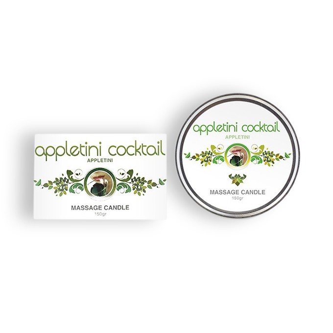 DESCRIÇÃO: Dê ao seu parceiro uma massagem sensual perfeita. Esta mistura de ingredientes nutritivos hidrata e suaviza a pele e perfumam-na com o delicioso aroma do cocktail appletini. Depois de acender a vela, ela vai-se transformar num óleo de massagem quente, perfumado e hidratante que pode ser aplicado diretamente sobre a pele, devido ao seu ponto de fusão perfeito (35 graus).