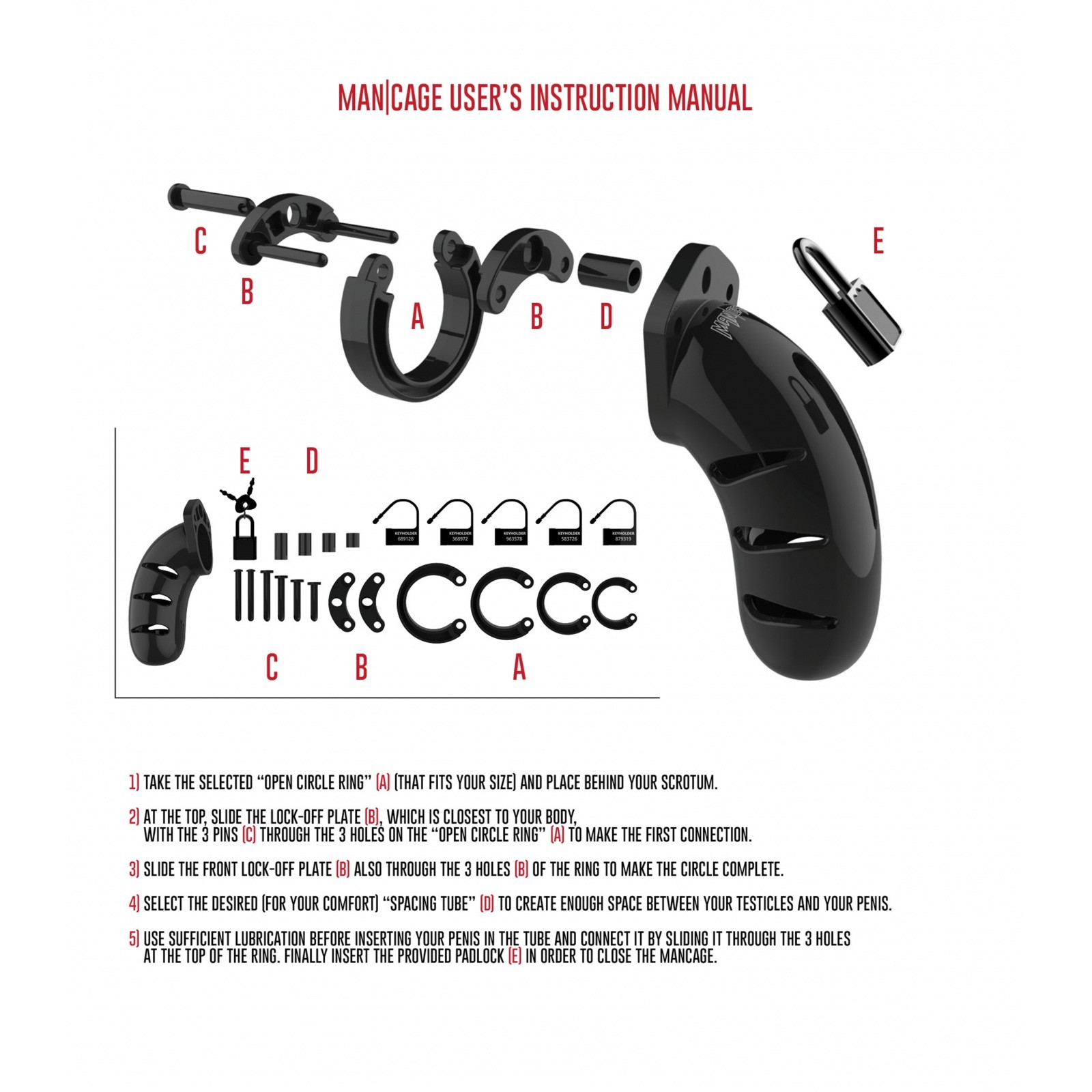 MATERIAL:Policarbonato.DESCRIÇÃO:MAN CAGE é a escolha ideal para prender um pénis maroto. Feita em material de alta qualidade e hipoalergénico. Esconda a chave para domínio total! Domine ou seja dominado. Livre de ftalatos e à prova de água. Possui aberturas que permitem a circulação do ar e urinar sem ter de a retirar. Esta jaula ajusta-se ao pénis através dos anéis incluídos, escolha o que melhor se adapta a si e garanta a melhor erecção de sempre ao retirá-la.DIMENSÕES:9 cm de comprimento e 3,5 cm de diâmetro.COR:Preto.
