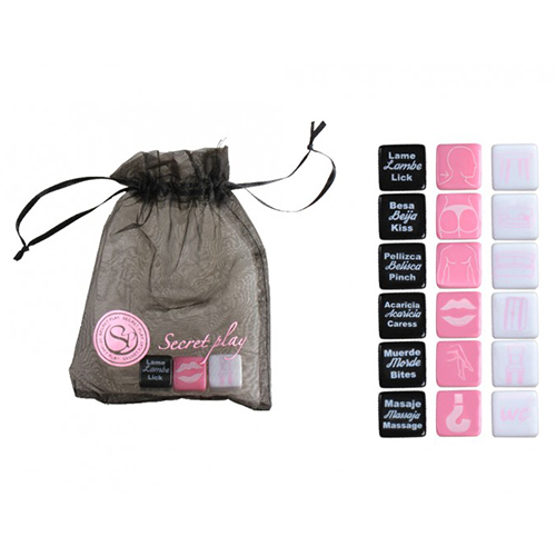 MATERIAL: Resina. DESCRIÇÃO: Estes dados são perfeitos para apimentar a sua vida sexual. Para quebrar o gelo, intensifique a atmosfera sexual e prolongue os preliminares. Um lançamento do dado determinará um jogo de carícias para partilhar com o seu parceiro! Deixe o seu corpo surpreender-se pelo acaso destas múltiplas combinações eróticas! Um jogo fácil no qual ninguém perde. Texto em português, espanhol e inglês. FORMATO: 3 dados.