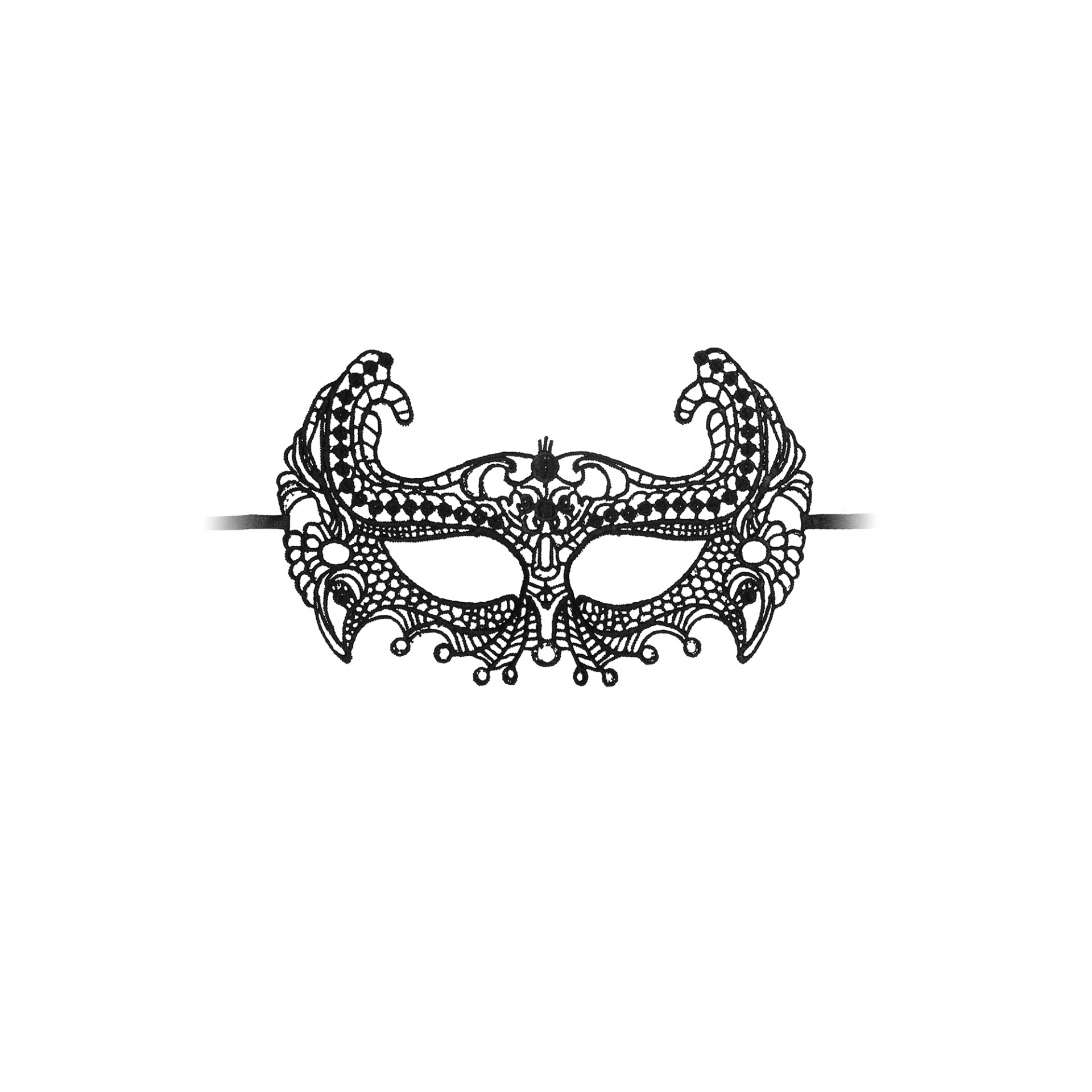 Máscara preta estilo rendado com padrão ornamental detalhado