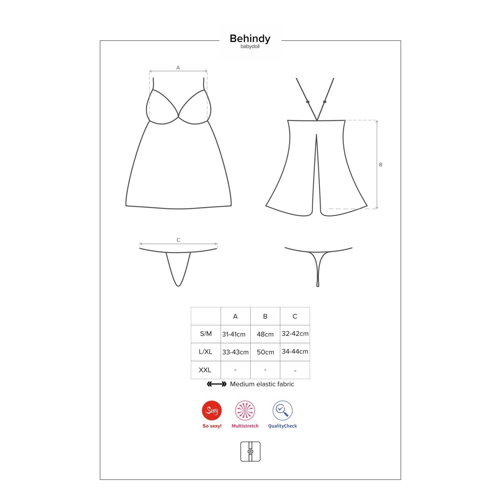 A camisa de noite Behindy é uma combinação de beleza e sensualidade. Seja corajosa o suficiente para tornar os seus desejos realidade...