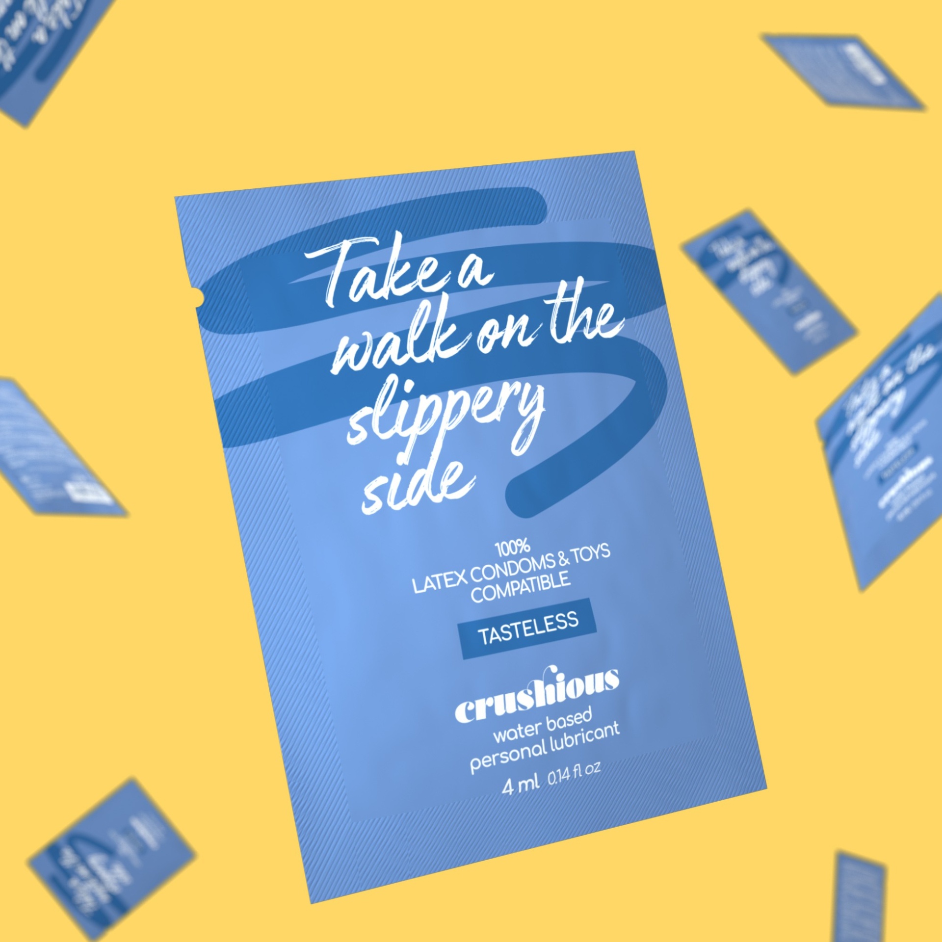 Os lubrificantes Crushious são elaborados com ingredientes de alta qualidade, oferecendo à sua pele uma experiência agradável e hipoalergénica.Os lubrificantes à base de água Crushious são seguros para uso com preservativos de látex e compatíveis com todos os brinquedos sexuais.O seu propósito é fornecer uma lubrificação ótima e duradoura durante as suas relações sexuais ou nos jogos a solo.Melhore as suas experiências de penetração com um lubrificante natural e de longa duração.Esta saqueta destina-se a uma só utilização.Como usar:Aplique uma pequena quantidade na área desejada. Repita conforme seja necessário. Enxague com água.Características principais:? Perfeita para dar a conhecer o produto? Sensação duradoura? Unisexo? Não gorduroso? Dermatologicamente e clinicamente testado? Compatível com preservativos de látex? Não mancha? Compatível com brinquedos sexuais? Solúvel em água? Feito na UEAtencão:As reações alérgicas não são comuns, mas podem ocorrer. Antes de usar o lubrificante de forma regular, aplique uma pequena quantidade no seu antebraço. Caso surja uma reação alérgica, suspenda o uso.Mantenha fora do alcance das crianças.Não use em pele irritada ou ferida.Quantidade:4 ml.