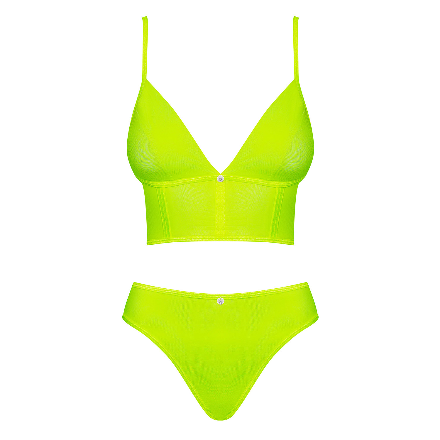 Um conjunto sexy que a deixará num estado de espírito romântico? Escolha o fantástico look do conjunto incrivelmente sexy Neonia! Pronta para realçar a 100% o seu charme feminino? Será assim quando vestir amarelo néon - irá radiar feminidade! De néon será uma gata selvagem.Detalhes excitantes:- conjunto inclui top e cueca- conjunto néon tentador- intrigante forma triangular das copas - peito sensualmente realçado- fecho éclair nas costas - look sexy- cuecas de corte clássico subtis- alças ajustáveis- decorações brilhantes entre os seios e nas cuecas- material agradável ao toque e flexível (90% poliamida, 10% elastano)