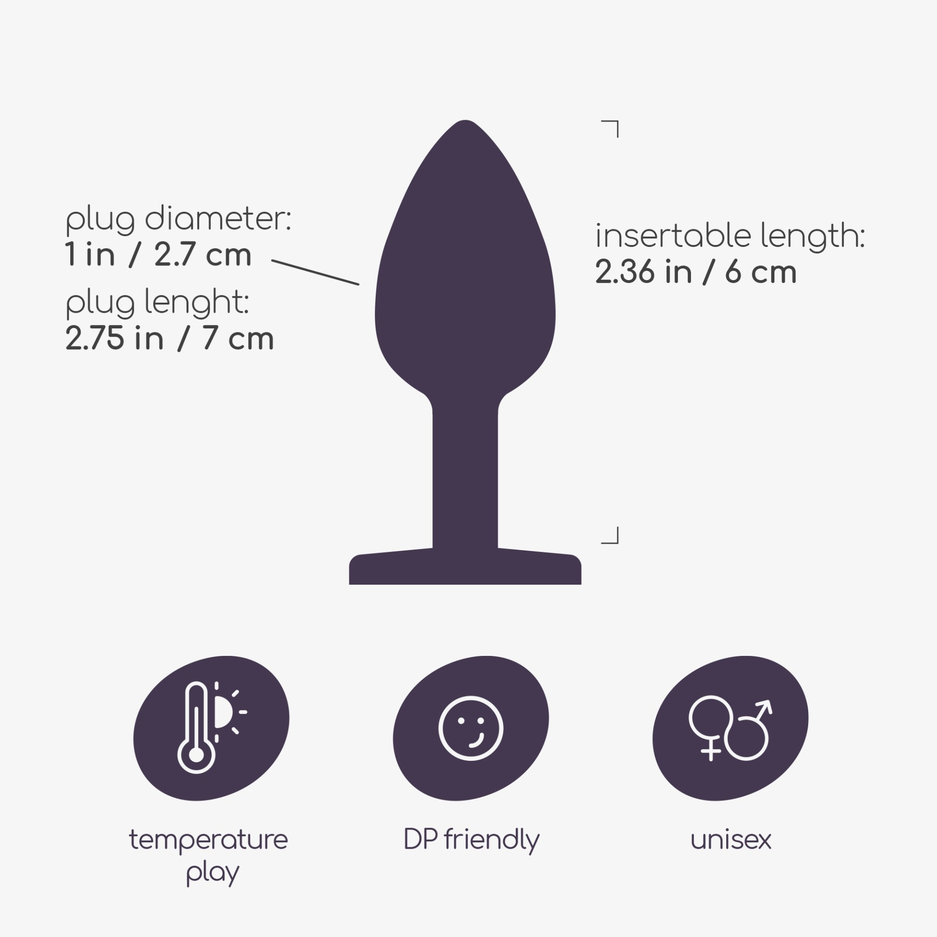 Entregue-se da forma mais luxuosa! Crushious apresenta a coleção de joias anais mais cobiçadas e elegantes. Bijou traz até si um plug anal sofisticado, disponível em três tamanhos. Escolha a sua cor favorita e dê mais glamour à sua vida íntima.Bijou pode ser usado como um adorno numa sessão de strip tease e como estimulação extra durante a penetração vaginal.O metal é perfeito para jogos de temperatura, submerja o seu plug em água quente ou fria para novas e excitantes experiências!Use com lubrificante para melhor inserção. Escolha os lubrificantes Crushious na versão Waterbased ou Anal para ainda melhores resultados.Lave o seu plug com água morna e sabão neutro após o uso, pode também utilizar um detergente antibacteriano específico para brinquedos.Apto para iniciantes e utilizadores mais experientes.Dimensões:Comprimento Inserível: 6cm; Diâmetro: 2,7cm.