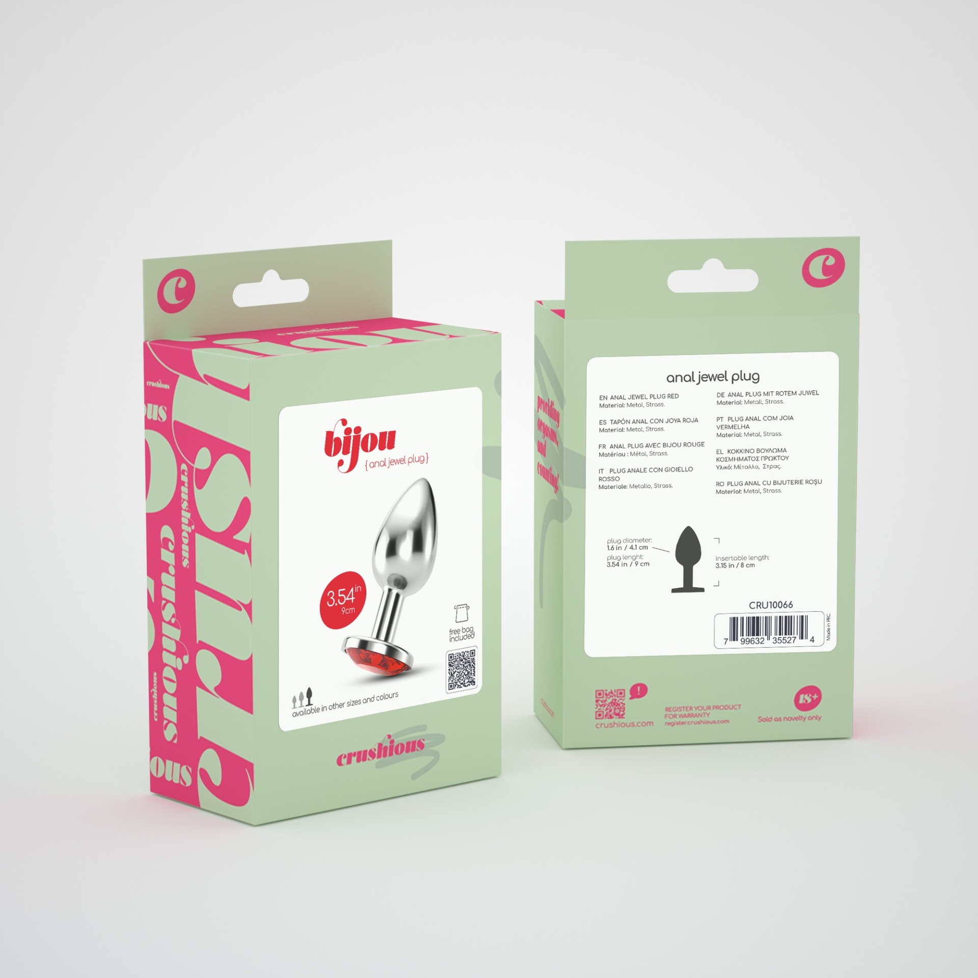 Entregue-se da forma mais luxuosa! Crushious apresenta a coleção de joias anais mais cobiçadas e elegantes. Bijou traz até si um plug anal sofisticado, disponível em três tamanhos. Escolha a sua cor favorita e dê mais glamour à sua vida íntima.Bijou pode ser usado como um adorno numa sessão de strip tease e como estimulação extra durante a penetração vaginal.O metal é perfeito para jogos de temperatura, submerja o seu plug em água quente ou fria para novas e excitantes experiências!Use com lubrificante para melhor inserção. Escolha os lubrificantes Crushious na versão Waterbased ou Anal para ainda melhores resultados.Lave o seu plug com água morna e sabão neutro após o uso, pode também utilizar um detergente antibacteriano específico para brinquedos.Apto para iniciantes e utilizadores mais experientes.Dimensões:Comprimento Inserível: 8cm; Diâmetro: 4,1cm.