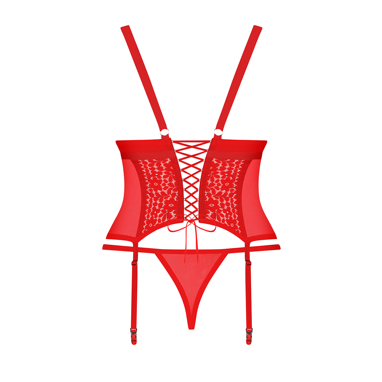 O vermelho vai dar-lhe... charme! Esta noite não vai encantar apenas ele, mas, também, a si mesma! O corpete sexy Blossmina com um laçado sensual nas costas vai despertar o diabo que há em si e inspirar o seu amado a continuar a declarar o seu amor por si. Vista o sedutor corpete da coleção Blossmina e acabe o dia nos braços do seu amado!Força - veja os detalhes excitantes:- corpete e tanga vermelhos sensuais- corpete divinal com laçado nas costas- alças ajustáveis- laço no busto que junta lindamente os seios- aros verticais que expõem a figura- renda floral original- ligas ajustáveis e duradouras- tanga clássica que se ajusta perfeita as curvas- material agradável ao toque e duradouro (90% poliamida, 10% elastano)