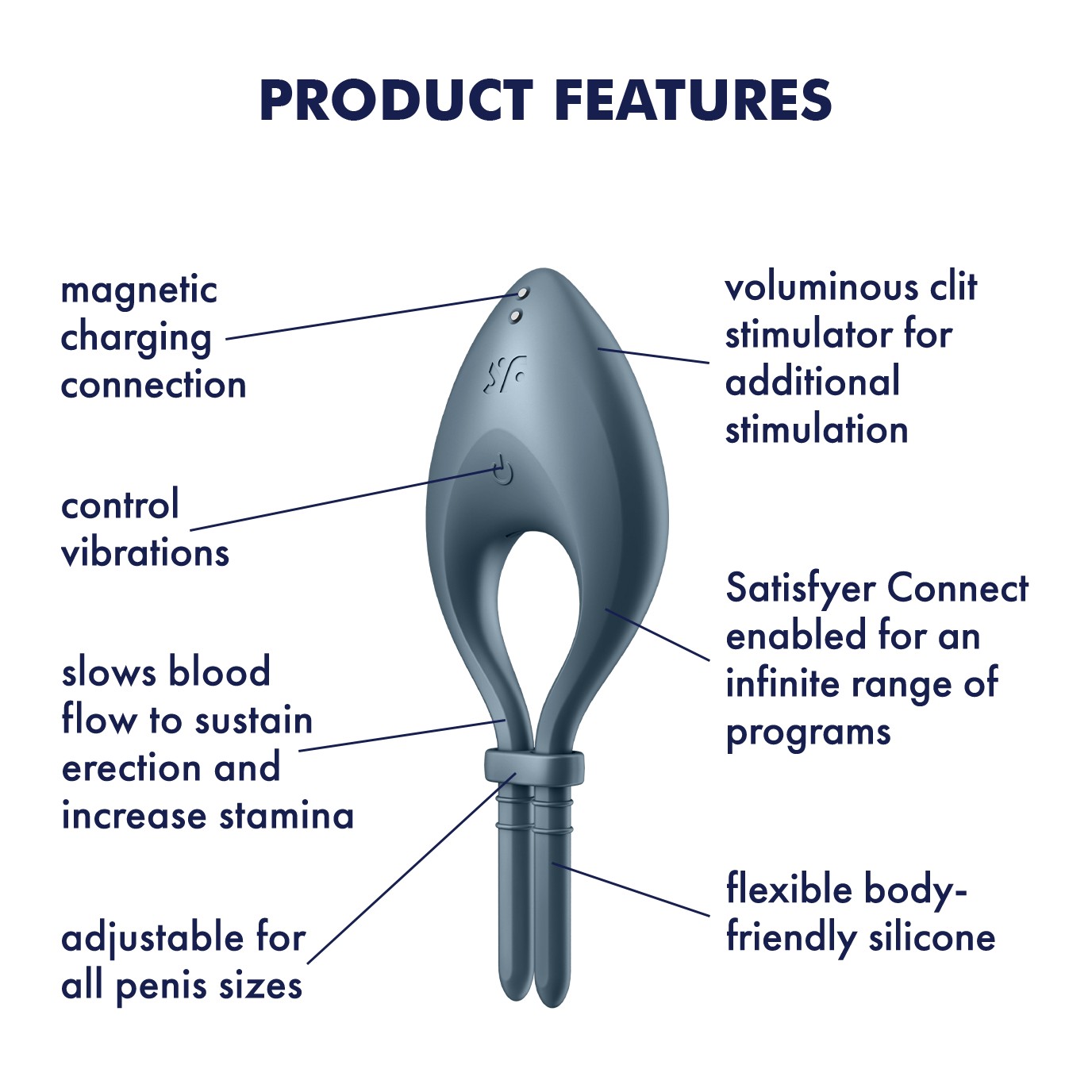 O Satisfyer Bullseye brilha com o seu design intemporal elegante e a banda ajustável com a qual o diâmetro pode ser individualmente ajustado. Por isso, é ideal para principiantes e todos que procuram o anel peniano perfeito. Graças ao efeito de congestionamento sanguíneo, o anel peniano ajustável não só atrasa a ejeculação, as também lhe dá uma ereção remarcável que lhe permite sentir todos os toques particularmente intensamente.O Satisfyer Bullseye tem 12 programas de vibração para mimar ambos os parceiros com vibrações potentes que são facilmente controladas - o botão de toque único na frente do brinquedo trata disso. A aplicação grátis Satisfyer Connect dá-lhe ainda mais liberdade enquanto brinca - pode criar os seus próprios ritmos de vibrações, associar as vibrações à sua conta Spotify ou controlar o brinquedo em todo o mundo por Internet.15 anos de garantia;Modo silencioso;Impermeável IPX7;Silicone antialérgico;Limpeza fácil;Bateria de lítio;Cabo de carregador USB incluído.Material: Silicone.Dimensões: 14,1 cm de comprimento | 5,3 cm de diâmetro.