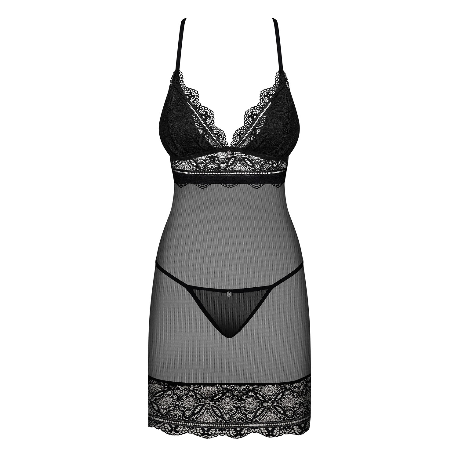 Conheça o pequeno vestido preto elegante e extremamente feminino - camisa de noite super sensual da coleção Renelia. Cobra-se de material fino e delicado e veja o quanto precisa de um pouco de prazer!Outros detalhes importantes:- camisa de noite preta Renelia- sutiã de copa moldada - conforto e conveniência- alças e fecho ajustáveis - um ajuste perfeito- joia de decoração no busto - chique e elegância- material translucido desperta a imaginação- tanga incluída- material delicado (94% poliamida, 6% elastano)