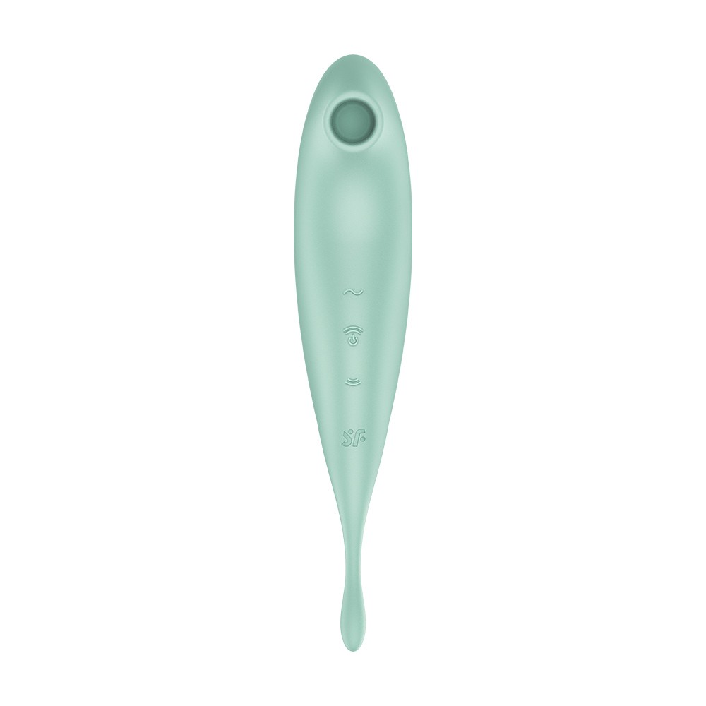 Combinação de estimulador de pulso de ar & vibrador de pontaUma extremidade estimula o clítoris através de ondas de pressão enquanto que a outra estimula qualquer zona erógena com vibrações circularesForma reta e ponta em forma ovalAplicação ativada com 2 motores controlados independentemente11 intensidades de onda de pressão e 12 definições de vibraçãoMaterial:Silicone.