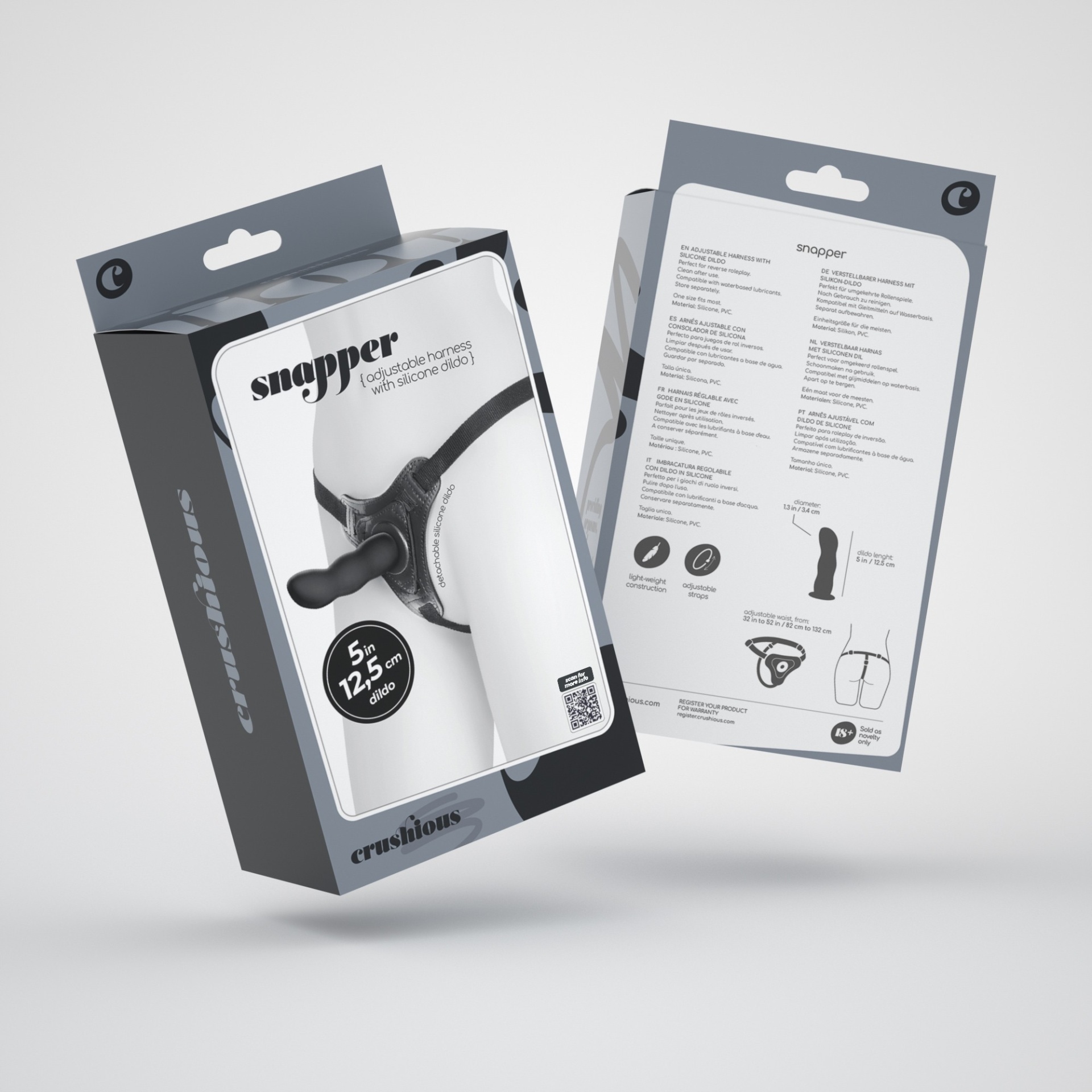 Alguma vez sonhou em desempenhar um papel diferente na sua vida sexual?O Snapper foi concebido para permitir às mulheres oferecer uma penetração mais profunda e intensa ao seu parceiro.As ondas do Snapper são perfeitas tanto para jogos vaginais como anais, as dimensões do dildo são adequadas para principiantes. Excelente para pegging!Feito de duas peças. O arnês universal adapta-se à maioria dos corpos e é realmente fácil de ajustar com uma mão apenas. O dildo é feito em silicone e encaixa para uma limpeza fácil.A limpeza é extremamente simples, lavar com água morna e sabão neutro ou usar um spray de limpeza de brinquedos. Secá-lo e armazená-lo longe de fontes de luz e calor.O uso de lubrificante é aconselhado. Utilize sempre lubrificantes à base de água. Os óleos e outros tipos de lubrificantes irão danificar a integridade do material.Os lubrificantes Crushious são a melhor adição aos seus brinquedos Crushious.Dimensões:12,5 cm de comprimento; 3,4 cm de diâmetroMaterial:Silicone, PVC