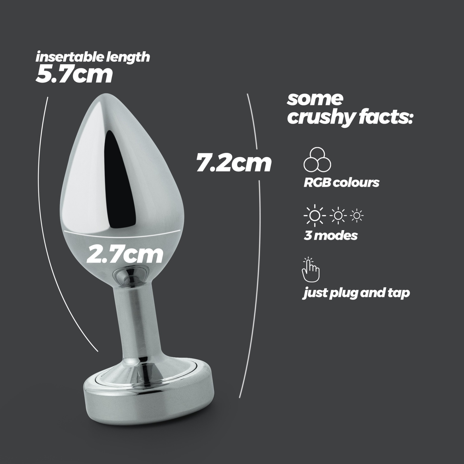 Queremos que te divirtas e desfrutes do sexo anal como jamais o fizeste na vida! Borealis vai iluminar o caminho para momentos memoráveis.Feito em metal com uma base luminosa com 3 combinações de luz disponíveis. Para alternar entre elas, basta carregar no centro.Ilumina o teu caminho para o quarto e deixa o teu parceiro maravilhado com uma visão inesquecível.Utilizar com lubrificante para uma melhor inserção. Escolhe os lubrificantes Crushious à base de água ou anal para obter melhores resultados.Retirar a caixa de luz antes de lavar. Lavar o plug com água morna e sabão neutro após a utilização; os brinquedos anais necessitam de um processo de limpeza mais cuidadoso. Para melhores resultados, utiliza o produto de limpeza de brinquedos sem álcool Crushious.Adequado para principiantes e utilizadores mais experientes.Pilha incluída, para a substituir, desenroscar a base e retirar a parte plástica. Abrir a caixa, substituir a pilha, selá-la e voltar a enroscar a base em segurança.Dimensões:Comprimento total: 7,2 cm;Comprimento inserível: 5,7 cm;Diâmetro: 2,7 cm.