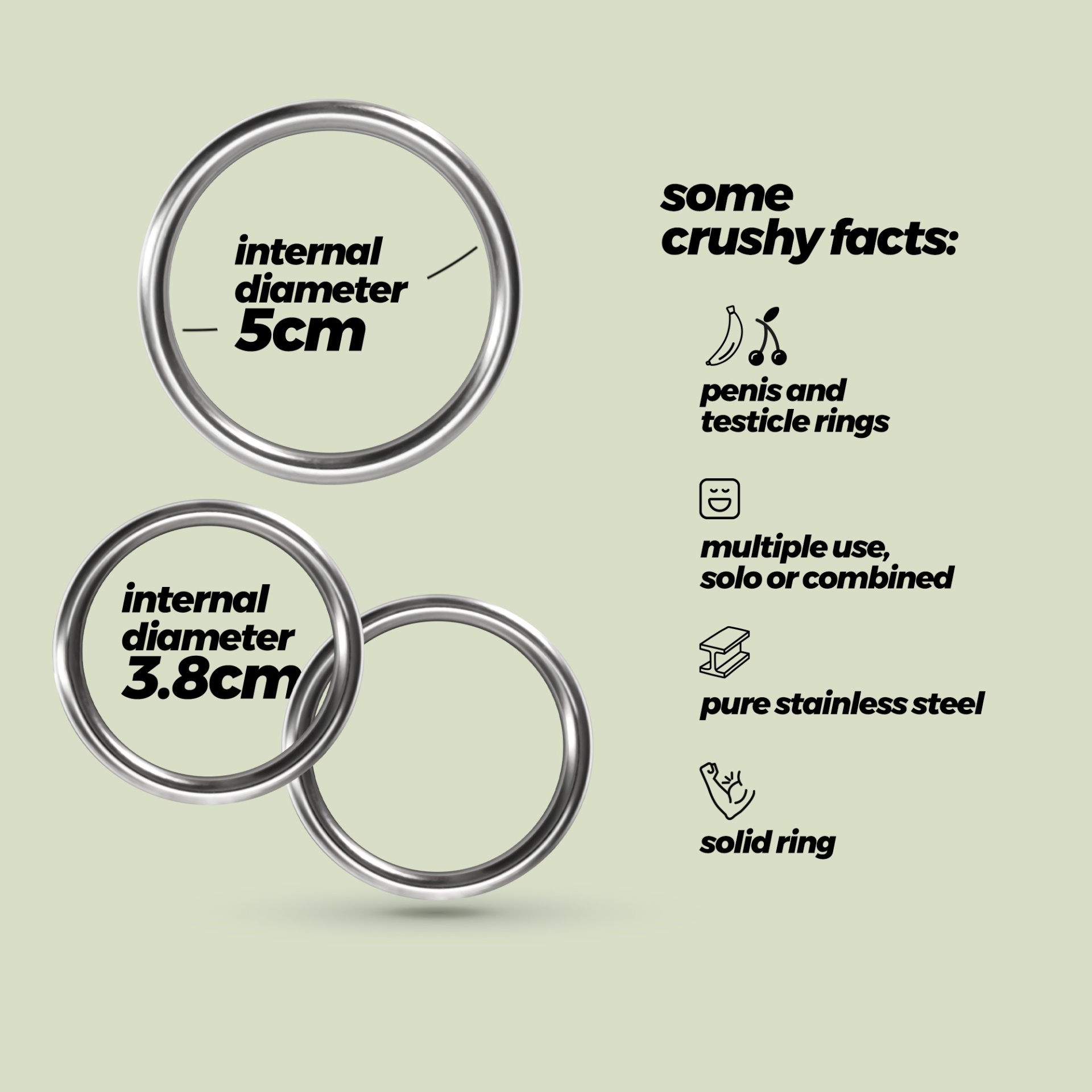 Procura um brinquedo versátil e resistente? Metaleros são os anéis supremos!Um conjunto de 3 anéis que pode ser utilizado para prender o pénis e os testículos.1 brinquedo, um mundo de sensações.Quer aumentar ainda mais o seu prazer? Utilize o metal para brincar com a temperatura, coloque os anéis durante alguns minutos em água fria ou quente antes de os utilizar.Cuidado para não utilizar os anéis durante longos períodos de tempo.A limpeza é super fácil, lave com água morna e sabão neutro ou utilize um spray de limpeza de brinquedos. Utilize um spray de limpeza antibacteriano para obter melhores resultados. Secar e guardar ao abrigo da luz e de fontes de calor.Aconselha-se a utilização de lubrificante. Utilize sempre lubrificantes à base de água. Os óleos e outros tipos de lubrificantes podem danificar a integridade do material.Os lubrificantes Crushious são o melhor complemento para os seus brinquedos Crushious.Dimensões:Diâmetro: 3,8 cm; 5 cm.Material:Metal.
