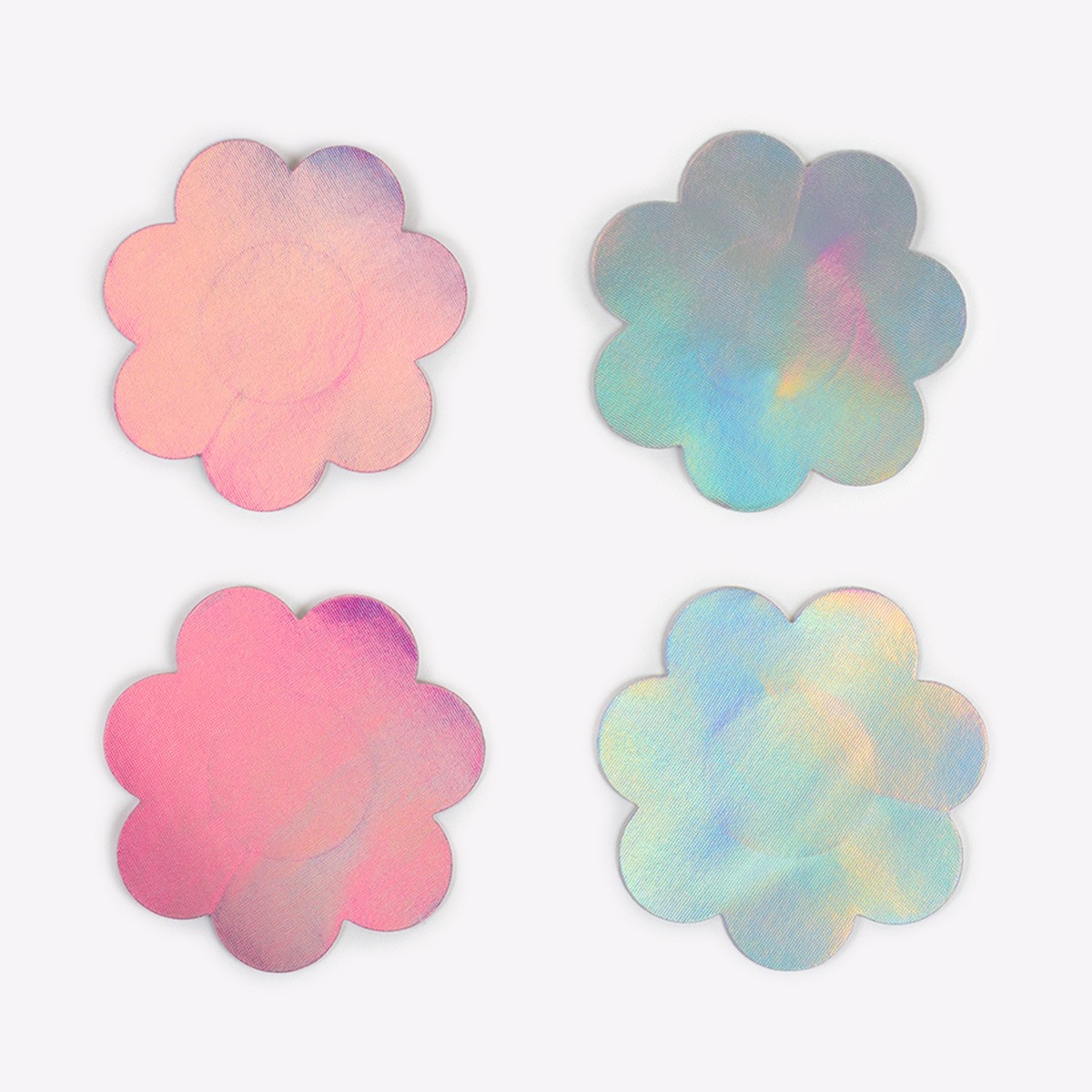 WOW BOOBS! É uma coleção de decoração corporal concebida para si, para a fazer sentir irresistível e sensual.Estes tapa mamilos têm infinitas utilizações, pode usá-los por baixo da roupa e esquecer o sutiã, por baixo de tops transparentes ou com decote, ou usá-los sem nada, porque não?Use-os consigo em todo o tipo de ocasiões, para uma saída à noite, para aquela festa tão esperada, para um evento elegante, para um encontro único ou simplesmente com a sua roupa casual para se sentir especial e única no seu dia a dia. Seja qual for a ocasião, o importante é o utilizador.Queremos dar largas à sua imaginação para que possa criar momentos cheios de paixão, sensualidade e elegância com os seus WOW BOOBS!Além disso, são super fáceis de aderir à pele e de retirar e adaptam-se a qualquer tipo de peito.Modo de utilização e recomendações:A zona do mamilo deve estar limpa e seca. Retirar a película protetora e aplicar diretamente sobre o mamilo, pressionando para garantir uma boa aderência. Não aplicar sobre a pele gretada, danificada ou queimada pelo sol. Interromper a utilização em caso de irritação.Recomenda-se a não utilização de hidratantes ou pós na área antes da aplicação para uma melhor aderência.Características:-Forma de flor-Medidas: 7.5CM (2.95IN)-Material: HolográficoConteúdo: 1 par de tapa-mamilos prateados e 1 par de tapa-mamilos cor-de-rosa