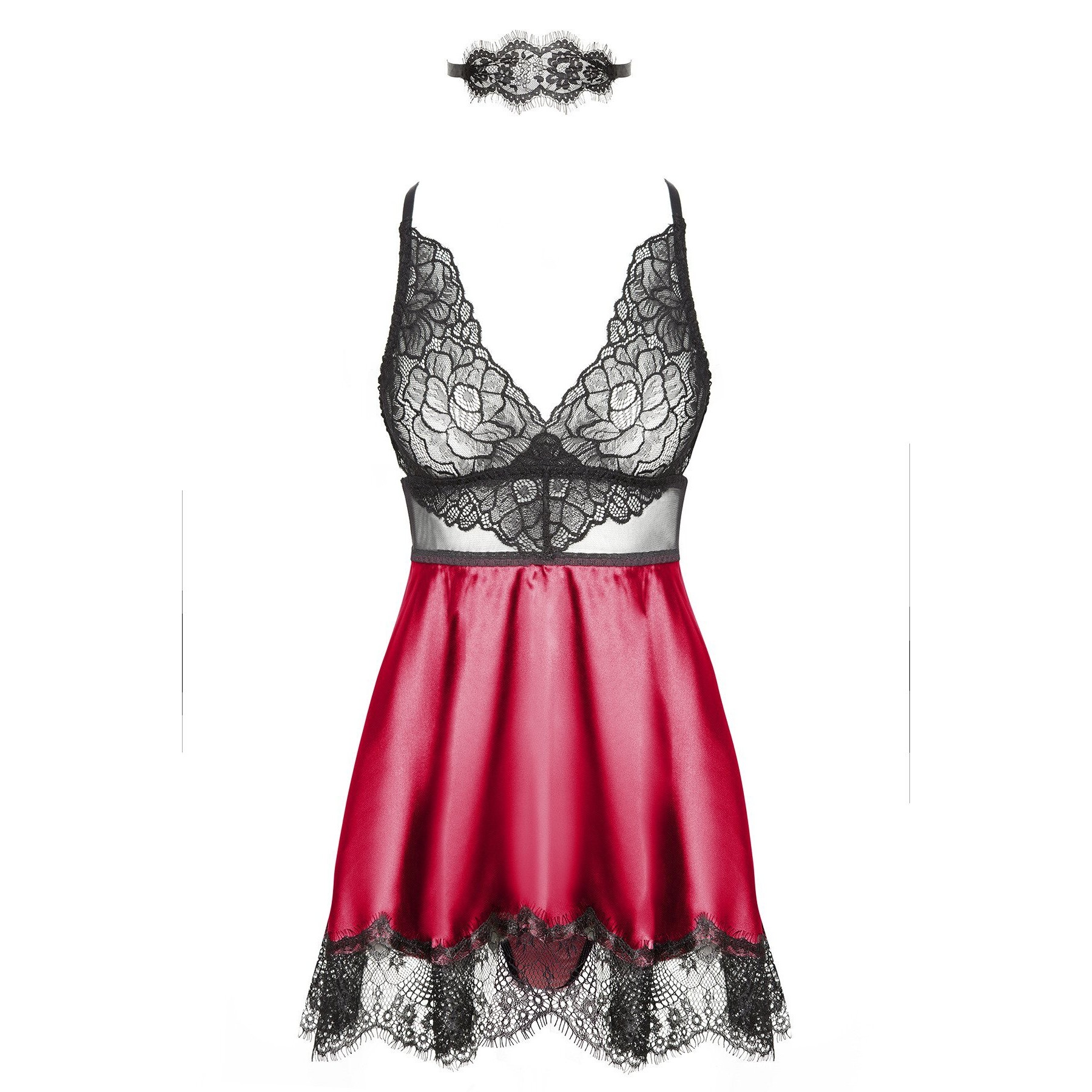 A camisa de noite Eve com máscara num tom roxo radiante é uma peça de lingerie luxuosa que combina elegância com um toque de mistério. Este conjunto inclui uma camisa de noite sedutora, uma tanga a condizer e uma máscara de renda, perfeita para um visual encantador e sedutor.O conjunto inclui: Uma camisa de noite, uma tanga e uma máscara de renda a condizer.Detalhes da camisa de noite:Cor da camisa de noite e da tanga: Roxo brilhante e luxuoso.Material: Feito de cetim e renda de alta qualidade, oferecendo uma sensação suave e macia contra a pele.Design: A camisa de noite apresenta copas de renda preta intrincada com padrões florais, proporcionando um toque delicado e feminino. As copas foram concebidas para realçar e apoiar o busto. O corpo acetinado da camisa de noite flui graciosamente, terminando num remate de renda recortada que confere um acabamento sofisticado. As inserções de renda transparente nos lados e nas costas criam um efeito de espreitadela tentador.Design da tanga: Feita com os mesmos materiais de cetim e renda, proporcionando um visual coeso com a camisa de noite.Design da máscara: A máscara de renda ata-se atrás com fitas de cetim, permitindo um ajuste regulável. O intrincado padrão de renda acrescenta um ar de mistério e fascínio.Ajuste: As alças ajustáveis garantem um ajuste confortável e personalizável. A banda elástica sob o busto proporciona apoio e modelação adicionais. Cai a meio da coxa, tornando-o perfeito para um look sensual e elegante.Embalagem: Apresentado numa elegante embalagem com a fotografia de apresentação do produto, marcada com o holograma do logótipo Beauty Night Fashion.Tamanhos: S/M, L/XL.S/M: (Seios: 81-91 cm, B-C, Cintura: 56-71 cm, Anca: 85-97 cm).L/XL: (Seios: 91-107 cm, C-D, Cintura: 71-91 cm, Anca: 97-112 cm).Material: 88% Poliéster, 12% Elastano.