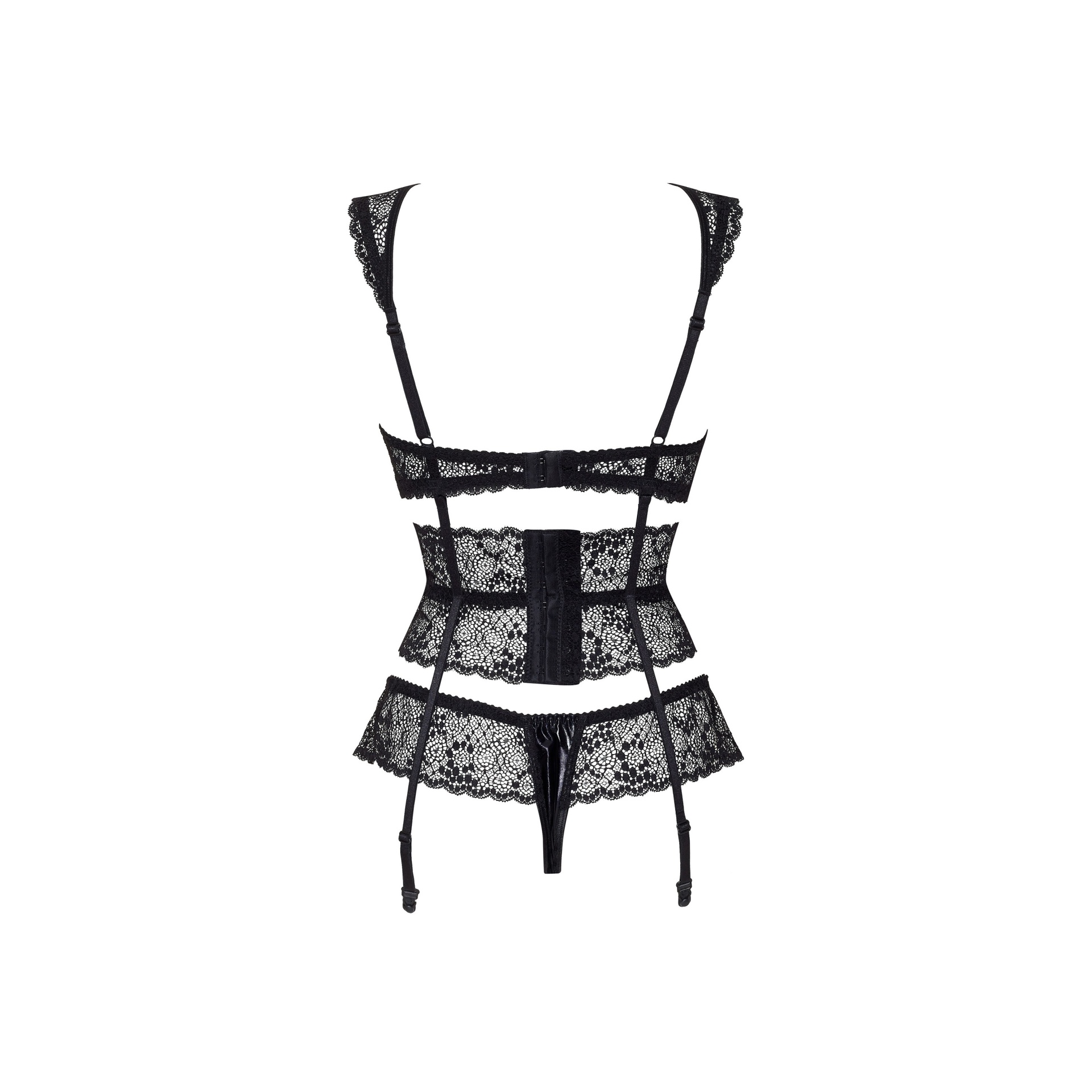 Abrace a sua feminilidade e delicie-se com o conjunto Lillie para uma noite de paixão e elegância.O conjunto Lillie, uma mistura de ousadia e elegância criada para tornar cada momento inesquecível. Concebido para a mulher confiante e ousada, este conjunto combina renda delicada e um corte provocante para criar um visual cativante.Caraterísticas principais:Design: Soutien com armação que proporciona apoio e acentua as suas curvas, garantindo que se sente confortável e sedutora. A renda luxuosa acrescenta um toque de sofisticação e sensualidade. Alças ajustáveis e ganchos nas costas. Cinto de ligas de cintura alta que realça a sua silhueta e acrescenta um charme vintage. Tanga a condizer que completa o conjunto com um visual sexy e arrojado.Embalagem: Apresentado numa caixa elegante com uma fotografia do produto, é um presente perfeito para alguém especial ou um mimo luxuoso para si própria.Tamanhos: S/M e L/XL.S/M: (Seios: 81-91 cm, B-C, Cintura: 56-71 cm, Anca: 85-97 cm).L/XL: (Seios: 91-107 cm, C-D, Cintura: 71-91 cm, Anca: 97-112 cm).Material: 70% Poliamida, 30% Elastano.