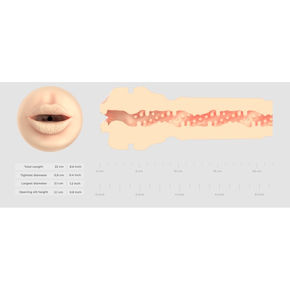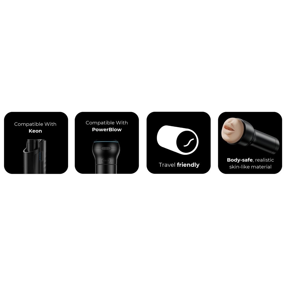 Prazer da felação totalmente automatizada e interativa!O masturbador Feel Stroker Mouth o acessório de sucção PowerBlow num conjunto combinado da Kiiroo. A dupla dinâmica para sensações intensas de sexo oral com controlo de sucção. Prático, discreto e adequado para qualquer pénis.O masturbador Feel Stroker Mouth da Kiiroo, fácil de segurar, tem uma forma de boca realista com lábios macios. Com uma textura excitante no interior para uma massagem intensa do pénis. A manga interior é feita de material Superskin macio, semelhante à pele, e pode ser facilmente removida da caixa para limpeza. 22,5 cm de comprimento, exterior Ø 5,8-8,4 cm, interior Ø 0,9 cm-3,1 cm (flexível). Peso 542. ABS, TPE.O PowerBlow da Kiiroo adapta-se perfeitamente ao Feel Stroker Mouth para atualizar o prático masturbador e transformá-lo na derradeira máquina de fazer sexo oral. O acessório de sucção PowerBlow é simplesmente aparafusado ao masturbador. Também se adapta a todos os outros masturbadores stroker da Kiiroo. Os vários modos de sucção podem ser controlados manualmente com o premir de um botão diretamente no PowerBlow. Também podem ser controlados via Bluetooth/Wifi/app para um prazer totalmente automatizado e interativo. Padrões de sucção individuais, jogo remoto e interações controladas à distância com um parceiro são possíveis através da aplicação FeelConnect. Os vídeos VR podem ser vistos através do FeelMe AI. Recarregável - cabo de carregamento USB incluído.7,2 cm de comprimento, Ø 6-7,8 cm. Peso 198 g.ABS, PU, silicone.