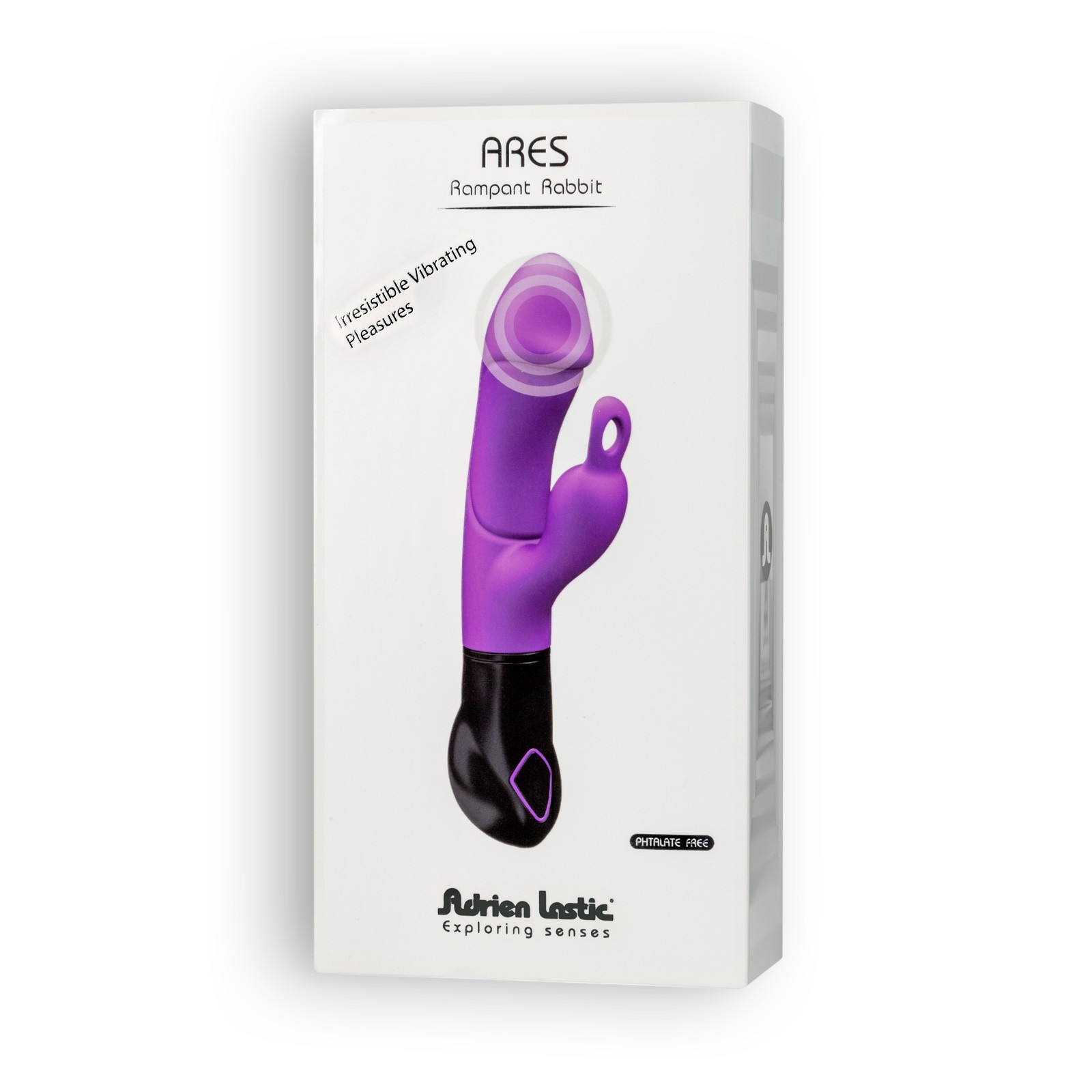 ARES possui dois motores silenciosos com uma oferta de poderosas vibrações para uma estimulação intensa do seu ponto G e clítoris. Concebido em silicone de qualidade médica, com uma textura suave e aveludada, tanto o seu design ergonómico como a sua superfície texturizada estimulam o seu corpo até ao êxtase. Com estimulador de clitóris e uma curvatura que lhe darão um prazer especial. Estes 8 programas de vibração, facilmente seleccionados com um único clique, proporcionam sensações intensas. Resistente à água e sem fltalatos. Inclui uma bolsa suave para transporte fácil e discreto.