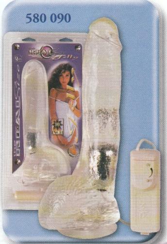 Vibrador translúcido com controle remoto e embalagem com cartão roxo